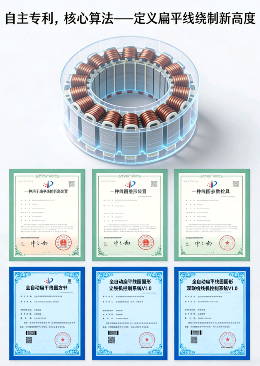 艾加特智能科技(惠州)有限公司在扁平线绕制领域取得突破性进展,正式获得包括“扁平线折角装置”、“线圈整形装置”及“立绕/双联控制系统软著”在内的多项核心授权。本文深度解构这些技术如何解决轴向磁通电机量产中的高精度折角与高填充率难题。